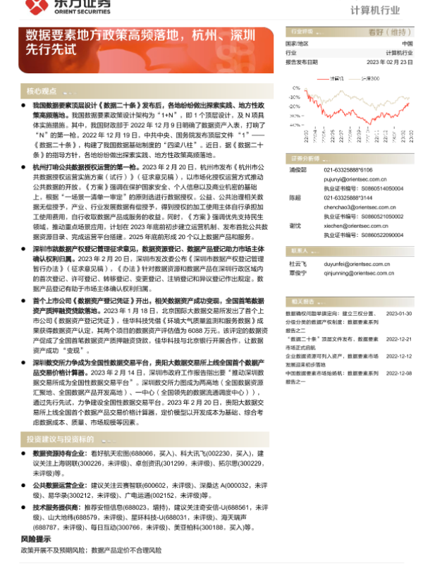 【东方证券】【20230223】计算机行业:数据要素地方政策高频落地,杭州、深圳先行先试-12页