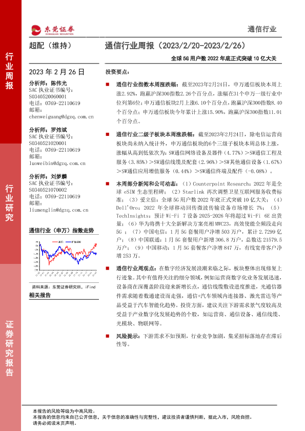 【东莞证券】【20230226】通信行业周报:全球5G用户数2022年底正式突破10亿大关-12页
