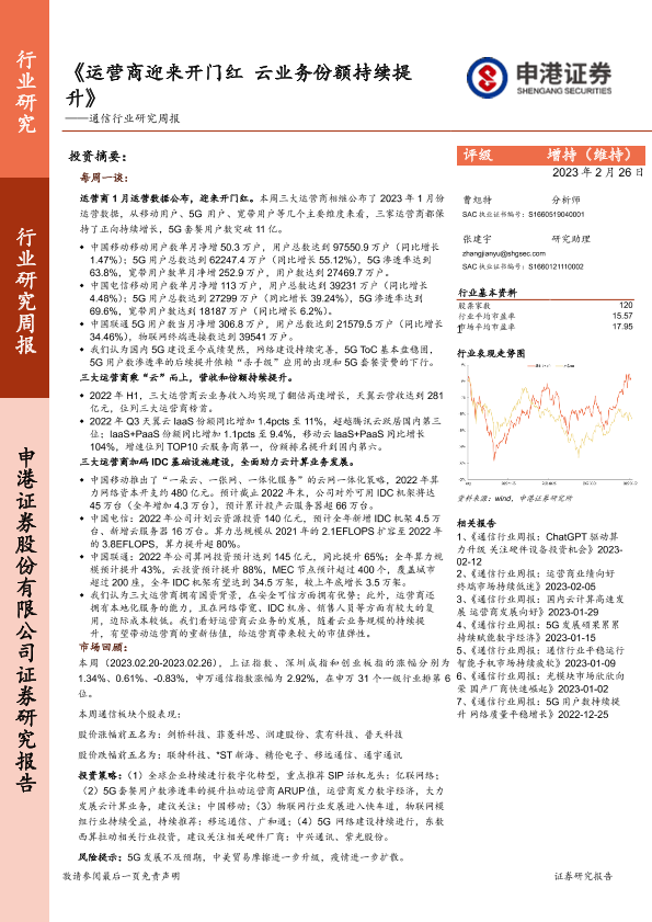 【申港证券】【20230226】运营商迎来开门红 云业务份额持续提升-10页