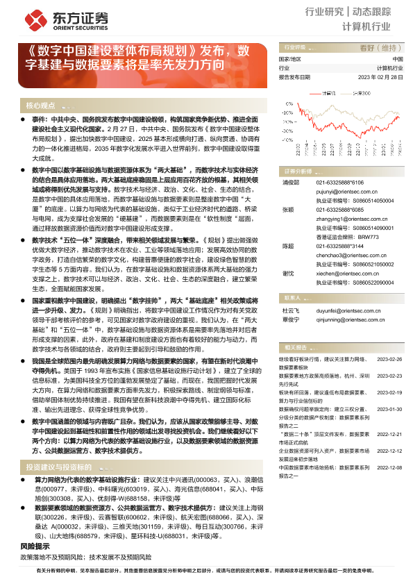 【东方证券】【20230228】20230228-东方证券-计算机行业动态跟踪:《数字中国建设整体布局规划》发布,数字基建与数据要素将是率先发力方向-10页