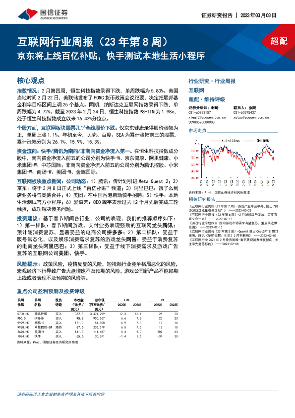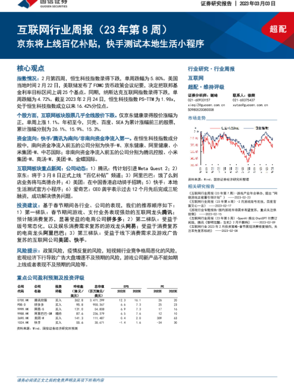 【国信证券】【20230303】互联网行业周报(23年第8周):京东将上线百亿补贴,快手测试本地生活小程序-12页