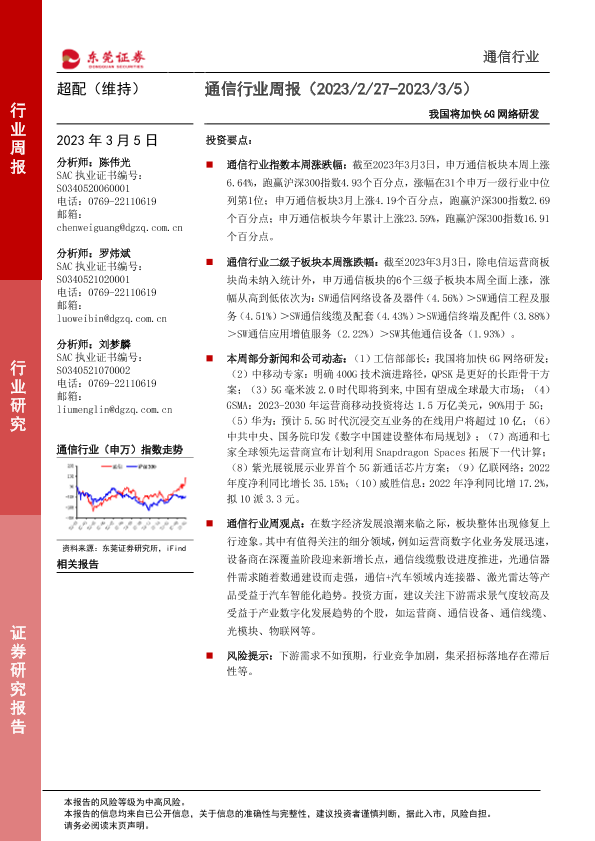 【东莞证券】【20230305】20230305-东莞证券-通信行业周报:我国将加快6G网络研发-13页