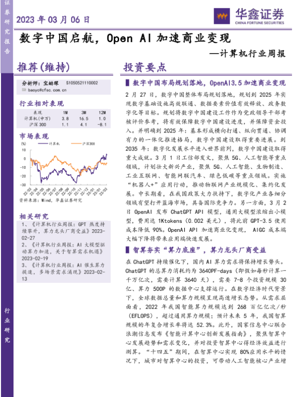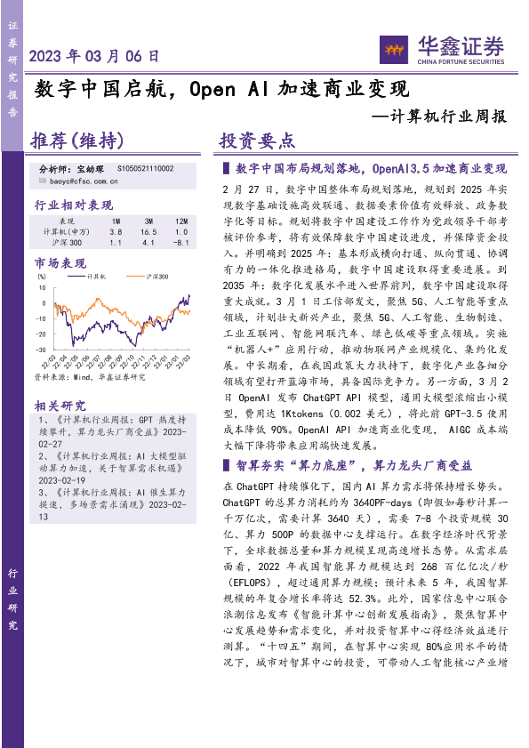 【华鑫证券】【20230306】计算机行业周报:数字中国启航,OpenAI加速商业变现-21页