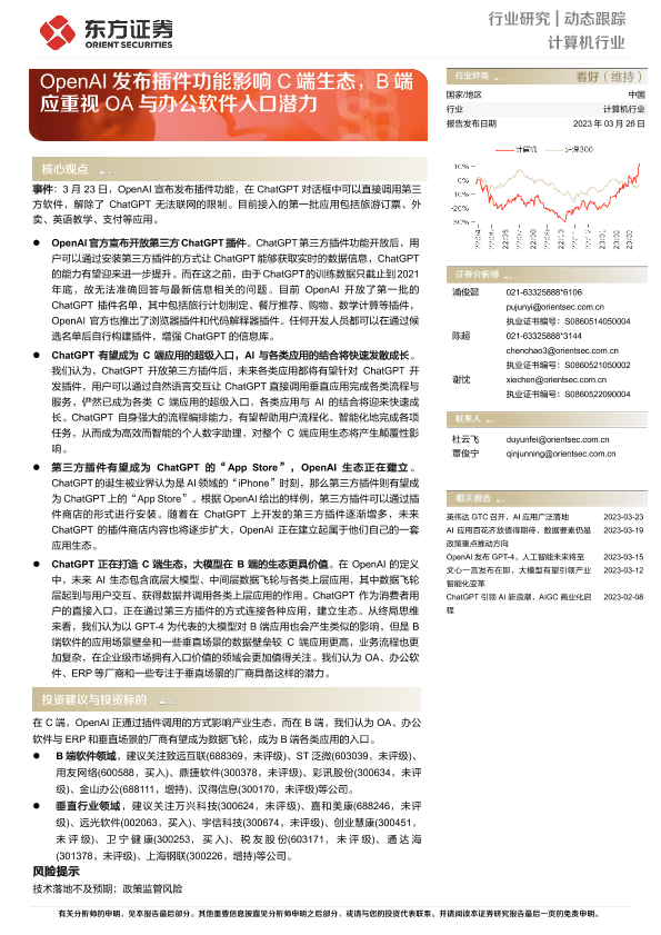 【东方证券】【20230326】计算机行业动态跟踪:OpenAI发布插件功能影响C端生态,B端应重视OA与办公软件入口潜力-10页