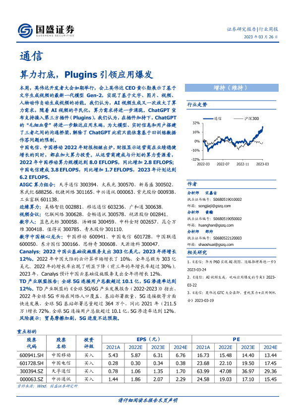 【国盛证券】【20230326】通信行业周报:算力打底,Plugins引领应用爆发-18页
