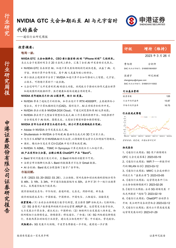 【申港证券】【20230326】20230326-申港证券-通信行业研究周报:NVIDIA GTC大会如期而至 AI与元宇宙时代的盛会-12页