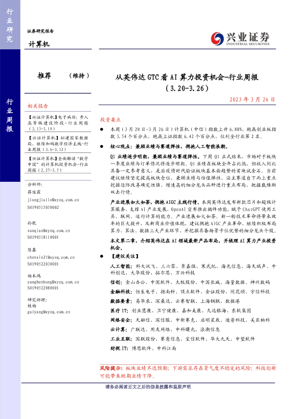 【兴业证券】【20230326】从英伟达 GTC看 AI算力投资机会-行业周报 (3.20-3.26)-16页
