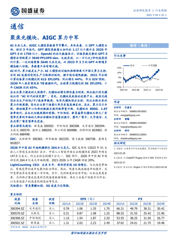 【国盛证券】【20230402】20230402-国盛证券-通信行业周报:聚焦光模块,AIGC算力中军-16页