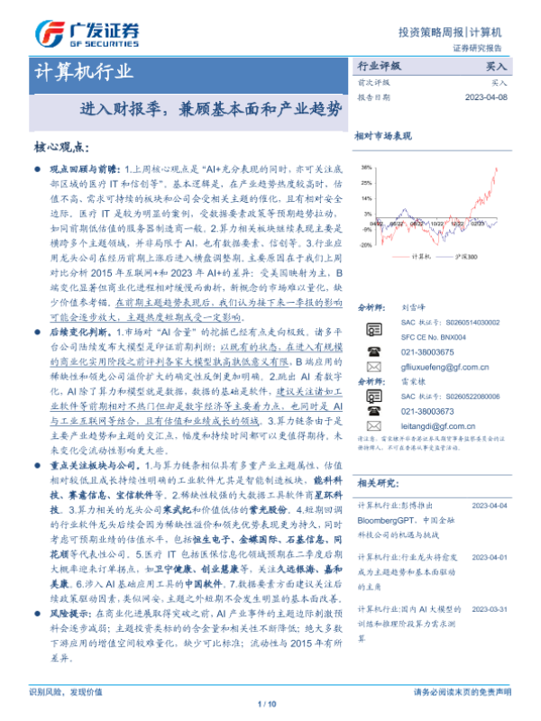 【广发证券】【20230408】20230408-广发证券-计算机行业投资策略周报:进入财报季,兼顾基本面和产业趋势-10页