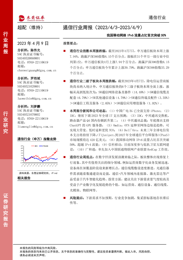 【东莞证券】【20230409】通信行业周报:我国移动网络IPv6流量占比首次突破50%-12页