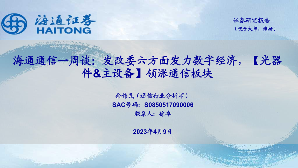 【海通证券】【20230409】海通通信一周谈:发改委六方面发力数字经济,【光器件&主设备】领涨通信板块-12页