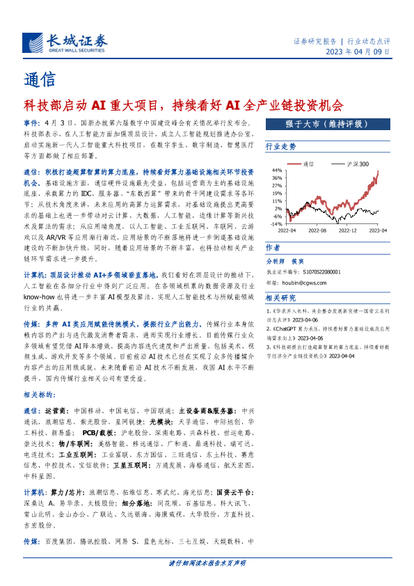 【长城证券】【20230409】20230409-长城证券-通信行业动态点评:科技部启动AI重大项目,持续看好AI全产业链投资机会-12页