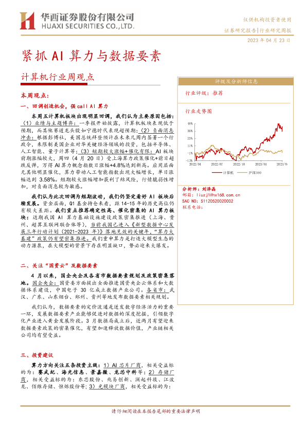 【华西证券】【20230423】20230423-华西证券-计算机行业周观点:紧抓AI算力与数据要素-29页
