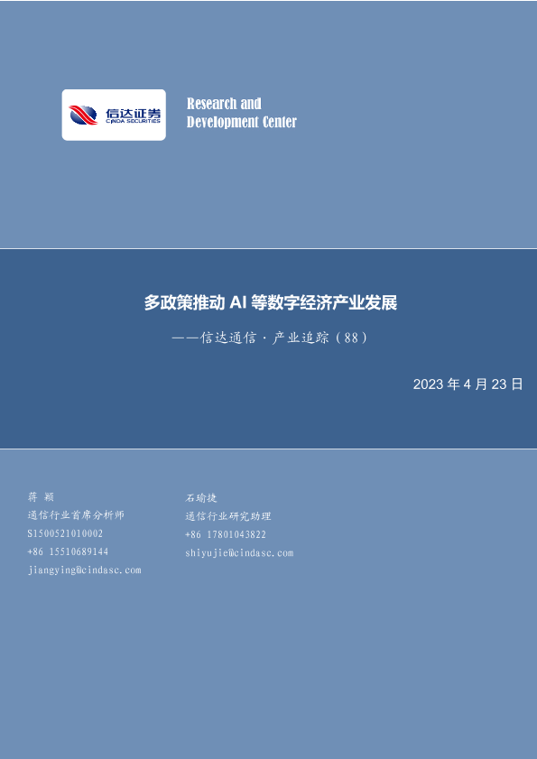 【信达证券】【20230423】信达通信·产业追踪(88):多政策推动AI等数字经济产业发展-27页