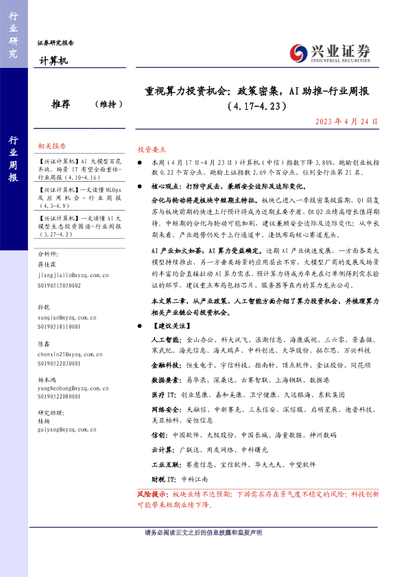 【兴业证券】【20230424】重视算力投资机会:政策密集,AI助推-行业周报 (4.17-4.23)-20页