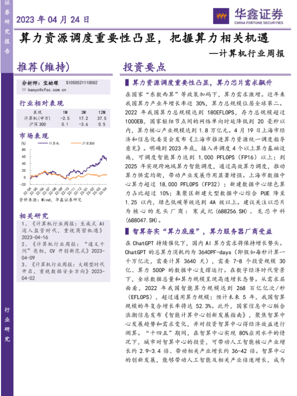 【华鑫证券】【20230424】计算机行业周报:算力资源调度重要性凸显,把握算力相关机遇-24页