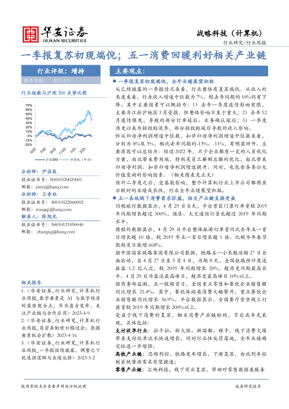 一季报复苏 五一消费 产业链 线下需求 计算机行业