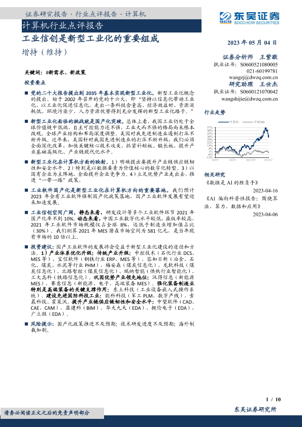 【东吴证券】【20230504】计算机行业点评报告:工业信创是新型工业化的重要组成-10页
