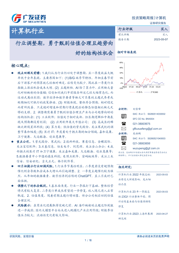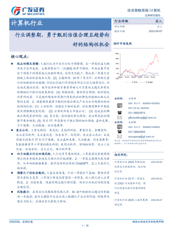 【广发证券】【20230507】20230507-广发证券-计算机行业投资策略周报:行业调整期,勇于甄别估值合理且趋势向好的结构性机会-10页