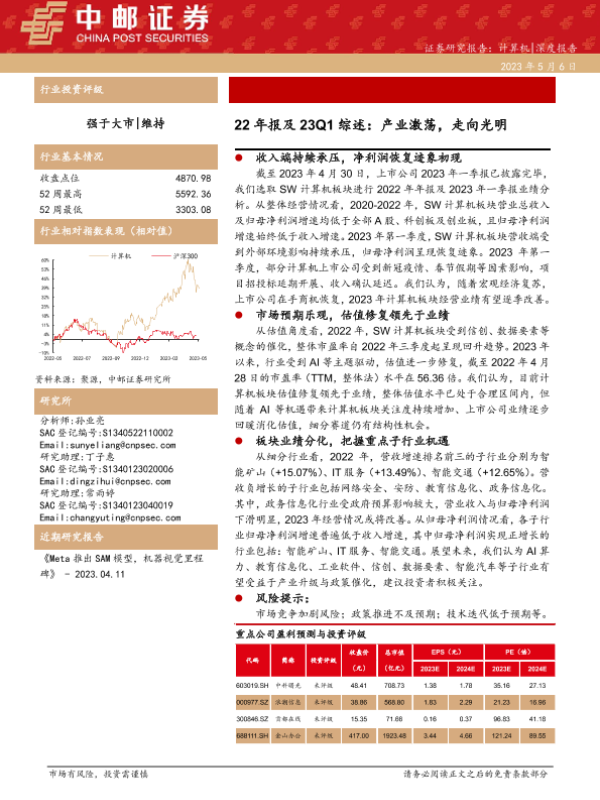 【中邮证券】【20230506】20230506-中邮证券-计算机深度报告:22年报及23Q1综述:产业激荡,走向光明-20页