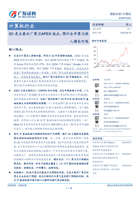 【广发证券】【20230510】20230510-广发证券-计算机行业跟踪分析:Q1是主要云厂商CAPEX低点,预计全年算力投入增长可观-16页
