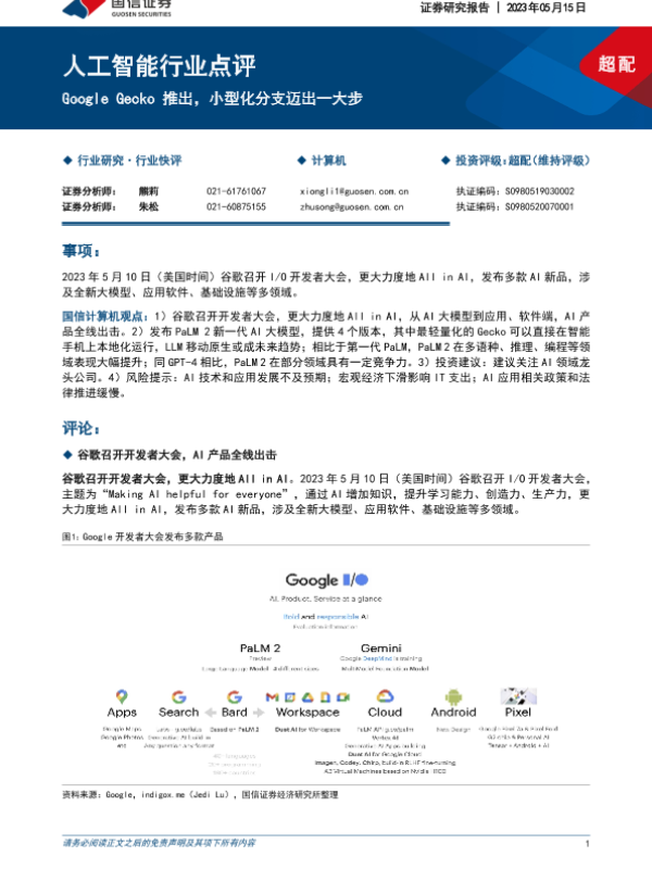 【国信证券】【20230515】20230515-国信证券-人工智能行业点评:Google Gecko推出,小型化分支迈出一大步-10页
