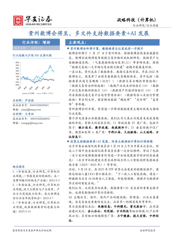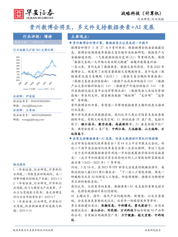 【华安证券】【20230521】20230520-华安证券-战略科技(计算机)行业周报:贵州数博会将至,多文件支持数据要素+AI发展-16页