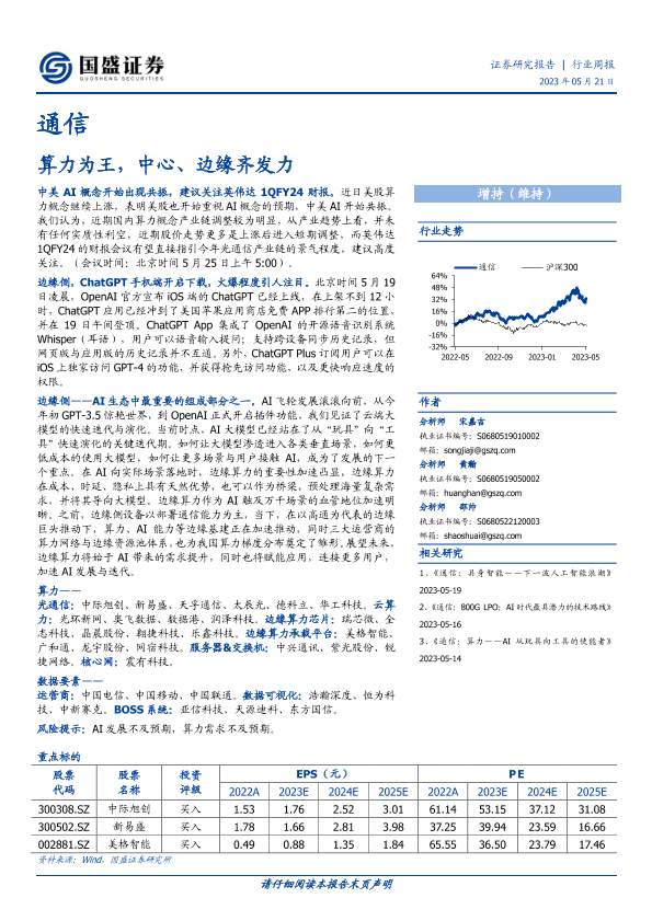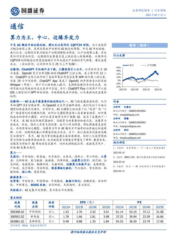 【国盛证券】【20230521】通信行业周报:算力为王,中心、边缘齐发力-13页