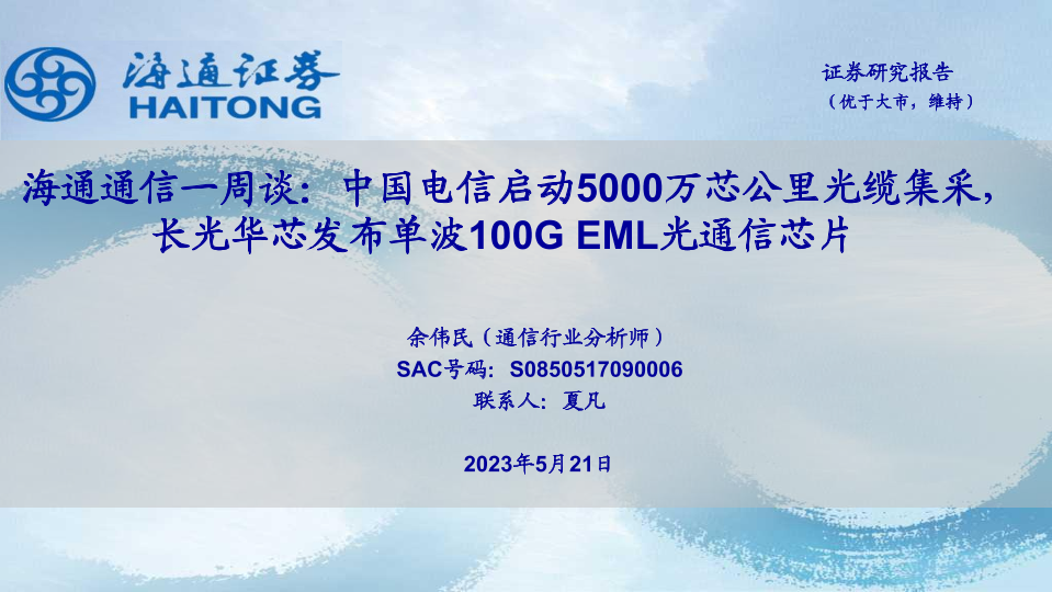 【海通证券】【20230521】海通通信一周谈:中国电信启动5000万芯公里光缆集采,长光华芯发布单波100G EML光通信芯片-11页