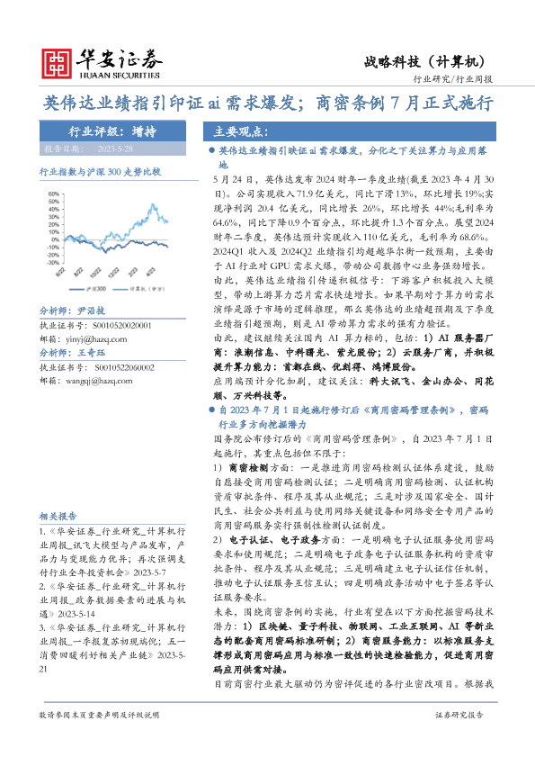 【华安证券】【20230528】20230528-华安证券-战略科技(计算机)行业周报:英伟达业绩指引印证ai需求爆发;商密条例7月正式施行-16页