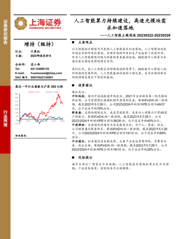 【上海证券】【20230529】人工智能主题周报:人工智能算力持续建设,高速光模块需求加速落地-10页