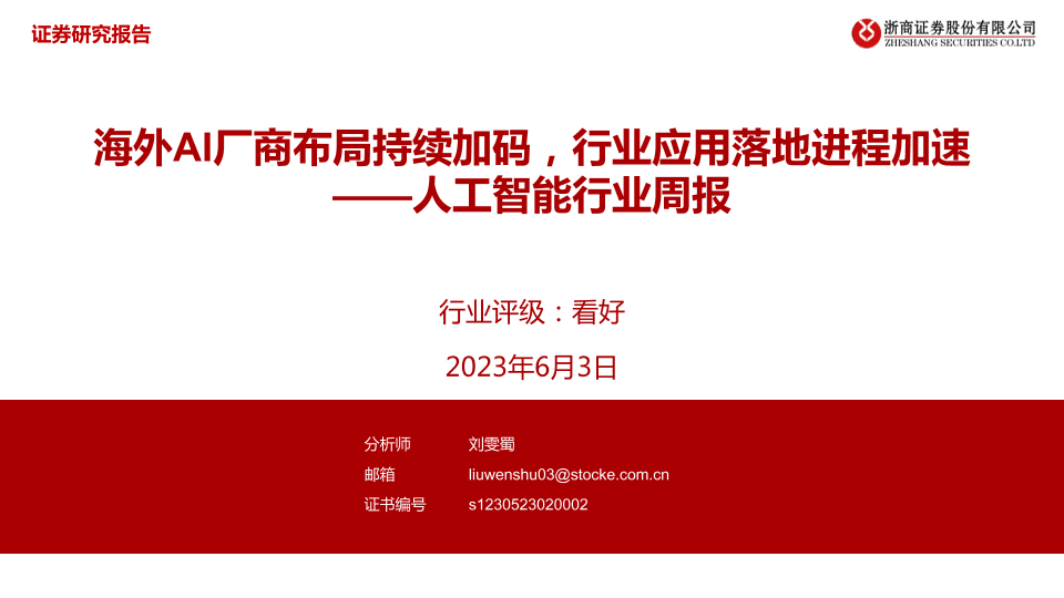 【浙商证券】【20230603】海外AI厂商布局持续加码,行业应用落地进程加速——人工智能行业周报-17页