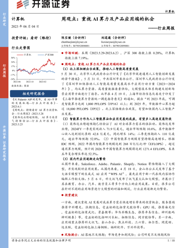 【开源证券】【20230604】20230604-开源证券-计算机行业周报:周观点:重视AI算力及产品应用端的机会-10页