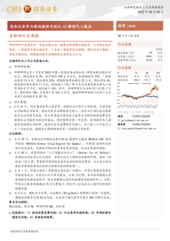 【海通证券】【20230604】20230604-招商证券-互联网行业周报:英伟达宣布为游戏提供定制化AI模型代工服务-10页