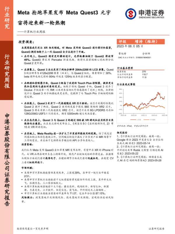 【申港证券】【20230605】20230605-申港证券-计算机行业周报:Meta抢跑苹果发布Meta Quest3元宇宙将迎来新一轮热潮-10页