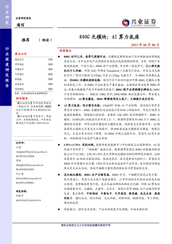 【兴业证券】【20230606】800G光模块:AI算力底座-27页
