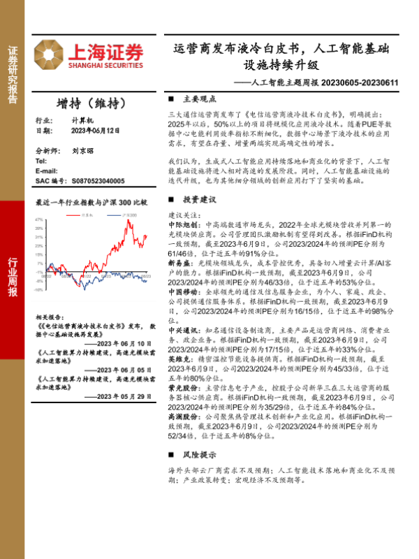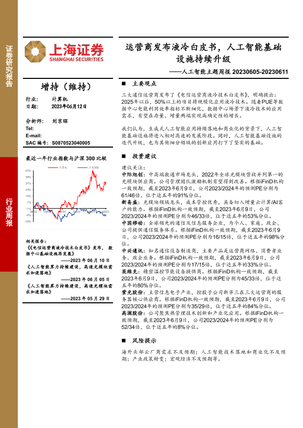 【上海证券】【20230612】20230612-上海证券-人工智能主题周报:运营商发布液冷白皮书,人工智能基础设施持续升级-10页