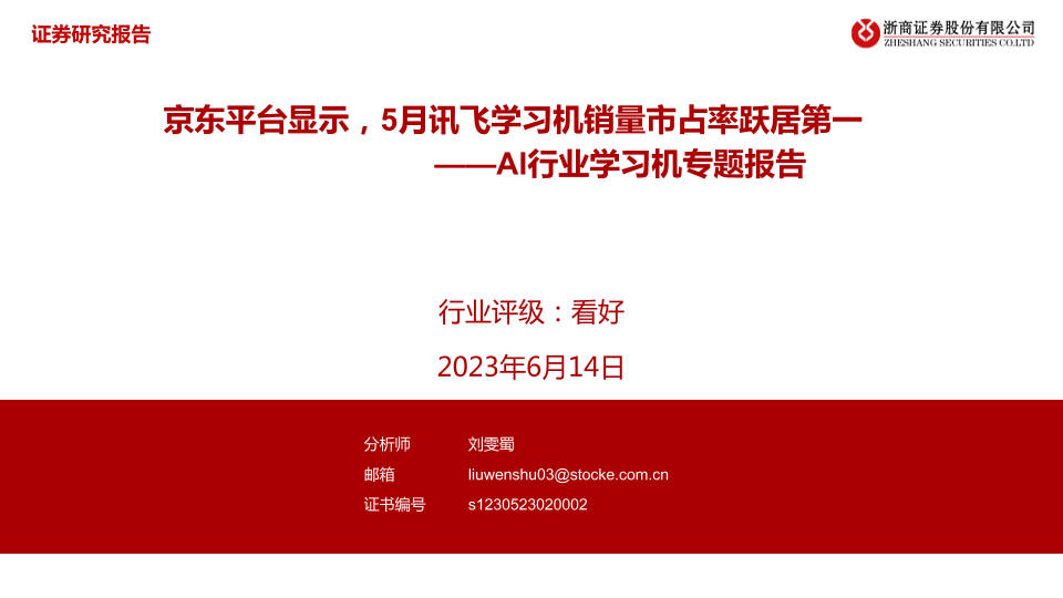 【浙商证券】【20230614】20230614-浙商证券-AI行业学习机专题报告:京东平台显示,5月讯飞学习机销量市占率跃居第一-18页