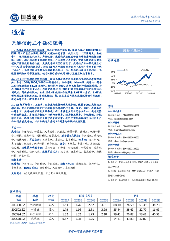 【国盛证券】【20230617】通信行业周报:光通信的三个强化逻辑-16页
