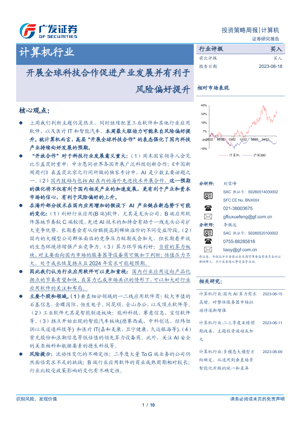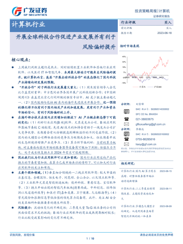 【广发证券】【20230618】20230618-广发证券-计算机行业投资策略周报:开展全球科技合作促进产业发展并有利于风险偏好提升-10页