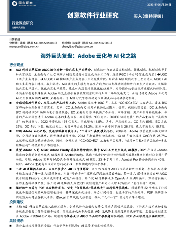 【国金证券】【20230620】海外巨头复盘:Adobe云化与AI化之路-34页