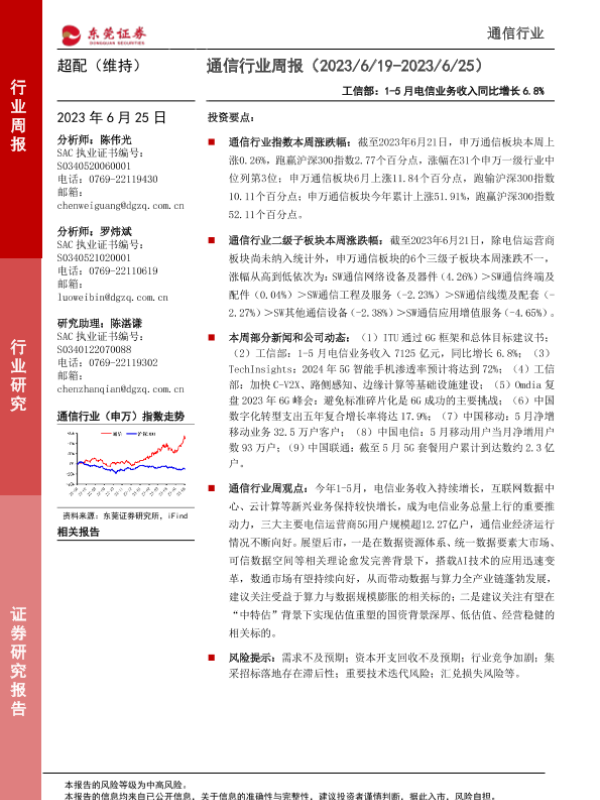 【东莞证券】【20230625】通信行业周报:工信部:1-5月电信业务收入同比增长6.8%-12页