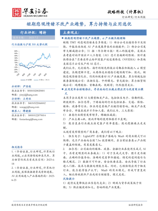 【华安证券】【20230702】战略科技(计算机):短期悲观情绪不改产业趋势,算力持续与应用选优-17页