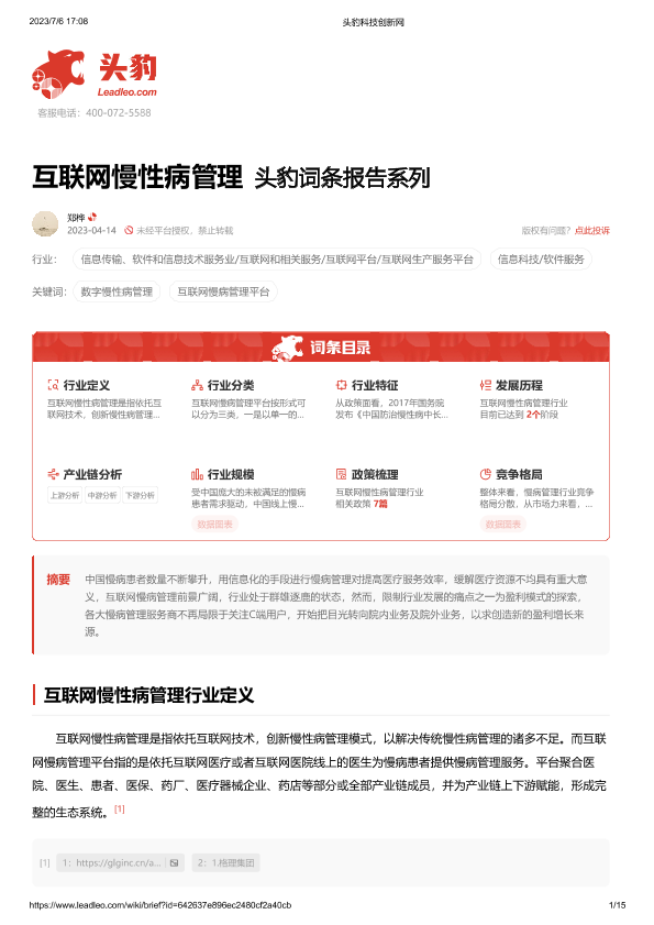 【头豹研究院】【20230414】互联网慢性病管理头豹词条报告系列-15页
