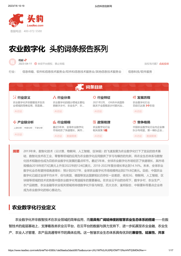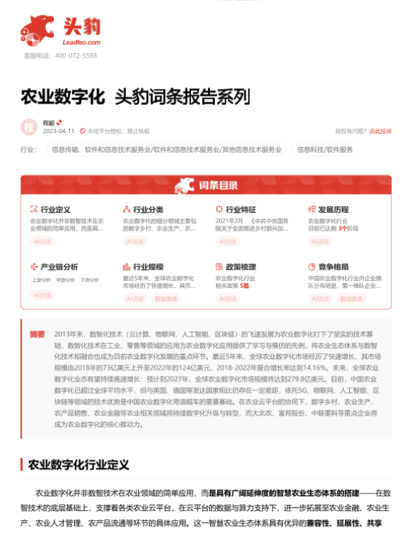 【头豹研究院】【20230411】农业数字化 头豹词条报告系列-17页