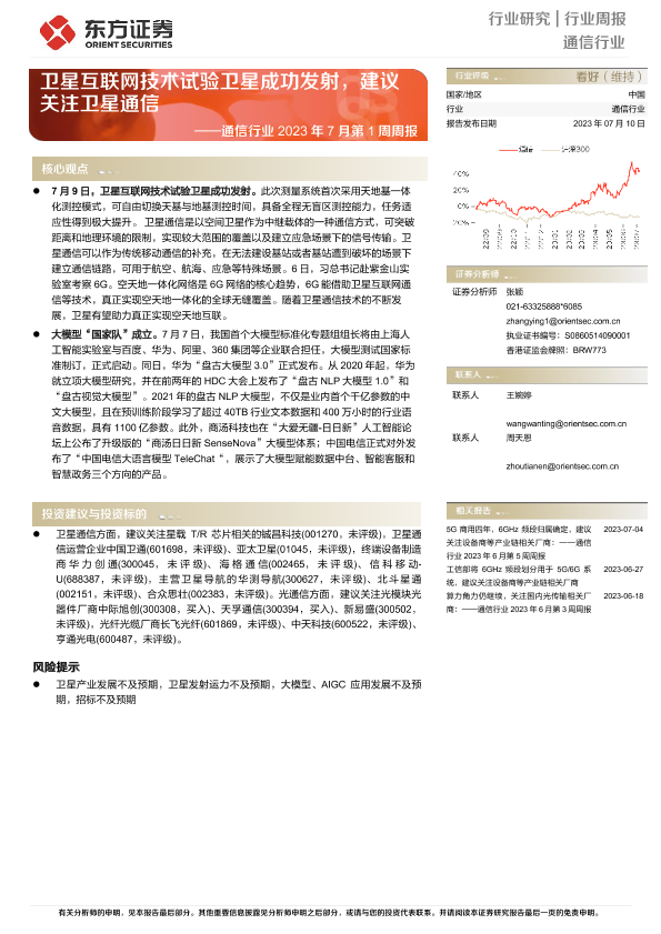 【东方证券】【20230710】通信行业2023年7月第1周周报:卫星互联网技术试验卫星成功发射,建议关注卫星通信-12页