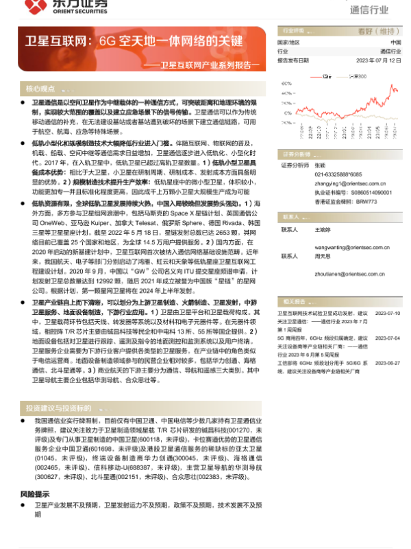 【东方证券】【20230712】20230712-东方证券-通信行业深度报告:卫星互联网产业系列报告一-卫星互联网:6G空天地一体网络的关键-31页