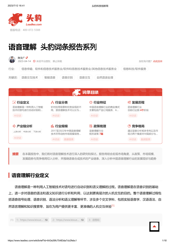 【头豹研究院】【20230712】语音理解 头豹词条报告系列-18页