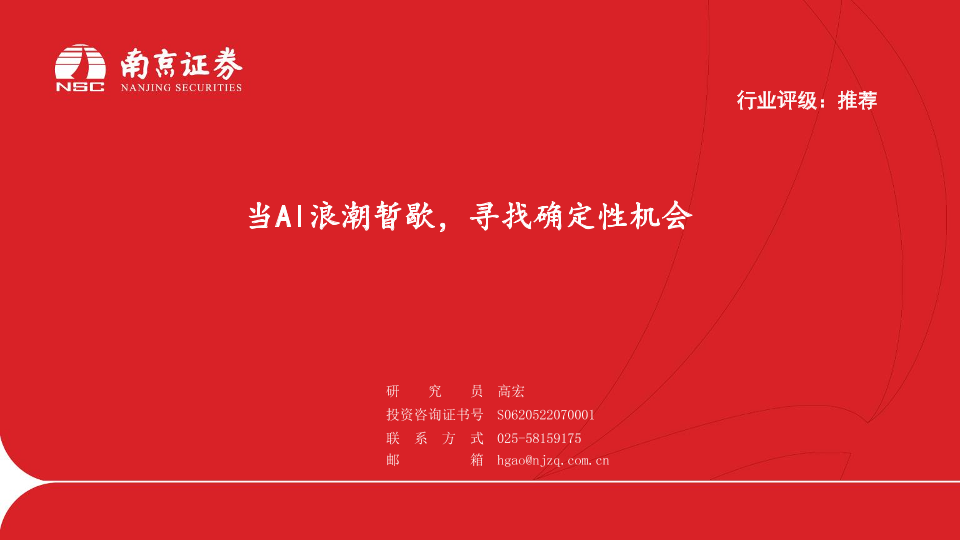 AI浪潮 南京证券 投资机会 证券分析 通信行业