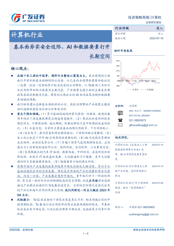 【广发证券】【20230716】20230716-广发证券-计算机行业投资策略周报:基本面夯实安全边际、AI和数据要素打开长期空间-11页